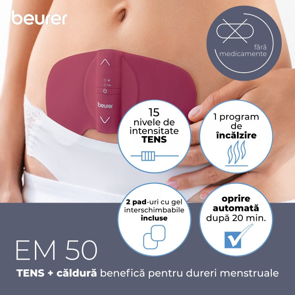 Aveți probleme cu crampe menstruale severe sau dureri abdominale din cauza endometriozei? Aparatul EM 50 de la Beurer vă oferă o experiență cu totul nouă în tratarea problemelor menstruale și este 100% fără medicamente!