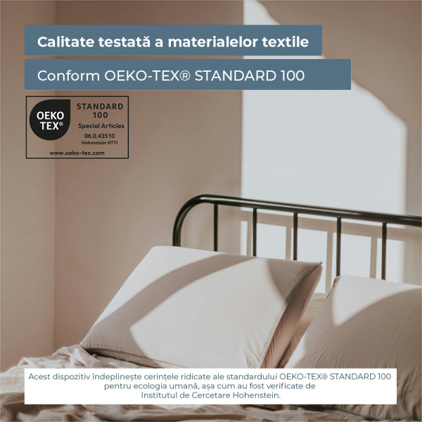 • OEKO-TEX® STANDARD 100: Acest dispozitiv îndeplinește cerințele ridicate ale standardului OEKO-TEX® STANDARD 100 pentru ecologia umană, așa cum au fost verificate de Institutul de Cercetare Hohenstein.