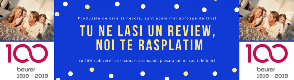 iunie 25, 2019 Lasa-ne un review si primesti 10% reducere la urmatoarea comanda! Stii ca parerea ta conteaza pentru noi, motiv pentru care te invitam sa ne spui parerea ta despre experienta avuta cu Beurer, iar ca…