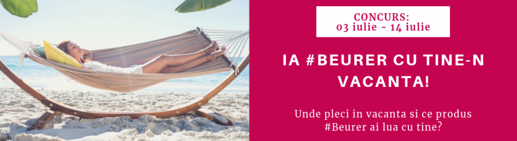 iulie 3, 2019 Ia #Beurer cu tine-n vacanta! Concurs: Ia #Beurer cu tine-n vacanta! Asa-i ca nu ti-e gandul la altceva decat la mare, la munte, la plimbari, la plaja, la relaxare…