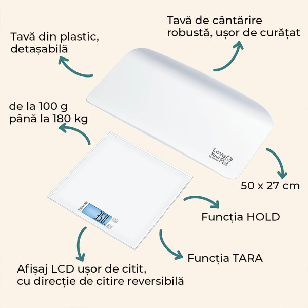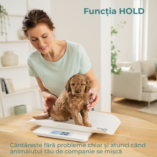 • Funcție HOLD, cântărește fără probleme chiar și atunci când animăluțul tău de companie se mișcă