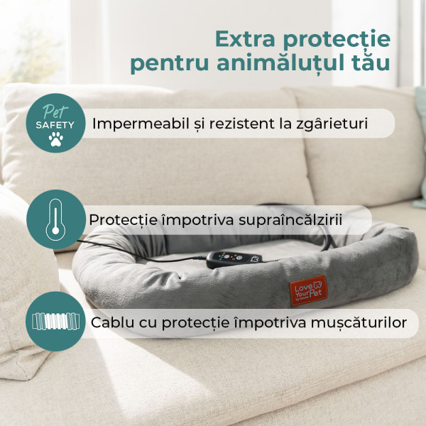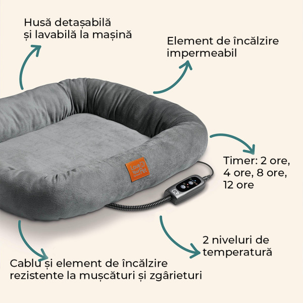 • Pat cu încălzire care oferă căldură liniștitoare pentru animăluțul tău de companie